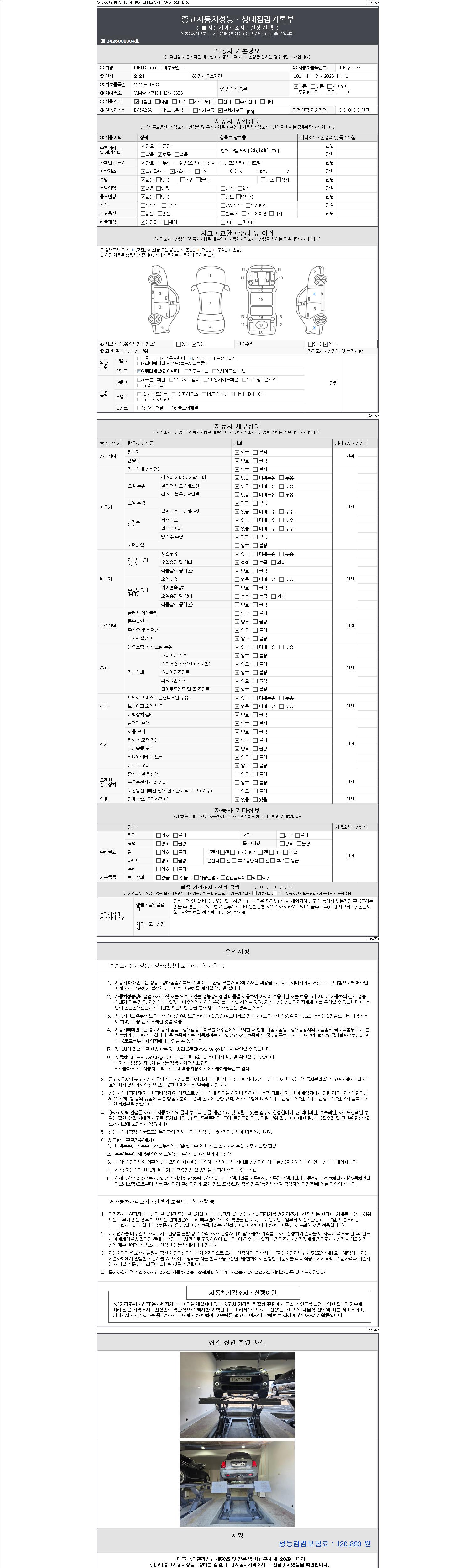 -중고자동차 매매업자를 통해 차량을 구입하실 경우 반드시 "중고자동차 성능, 상태점검 기록부"를 교뷰 받으셔야 하며, 매매업자는 반드시 의무 교부 하여야 압니다.