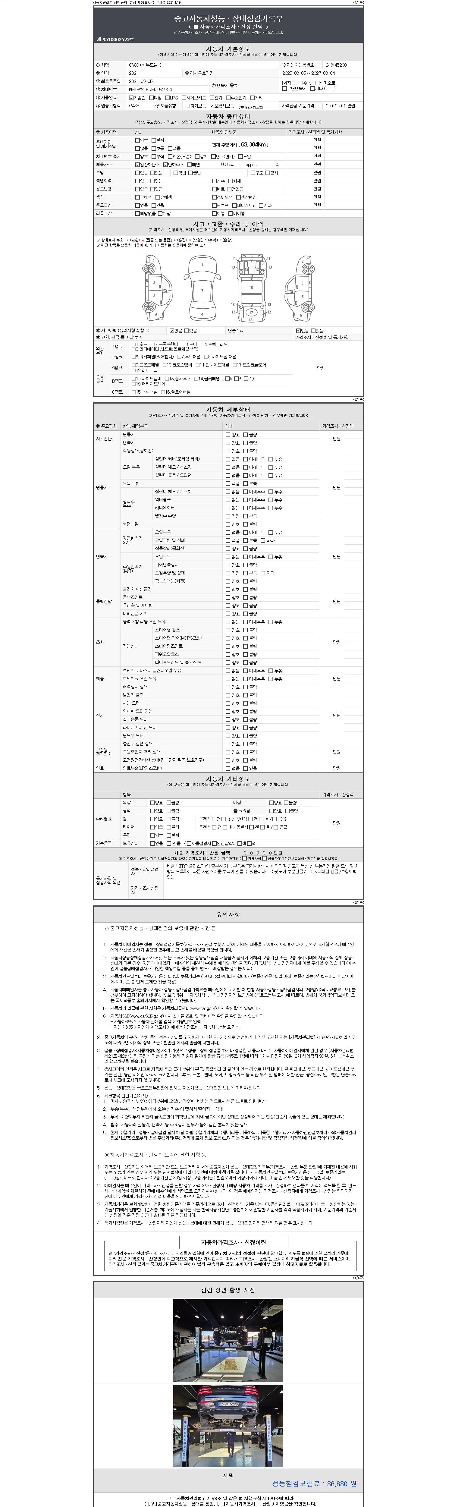 | 주행거리 | 68,304 km | 차량번호 | 248너5290 | 사고유무 | 성능기록부 참조 | 제시번호 | 제 2147483647 호 |