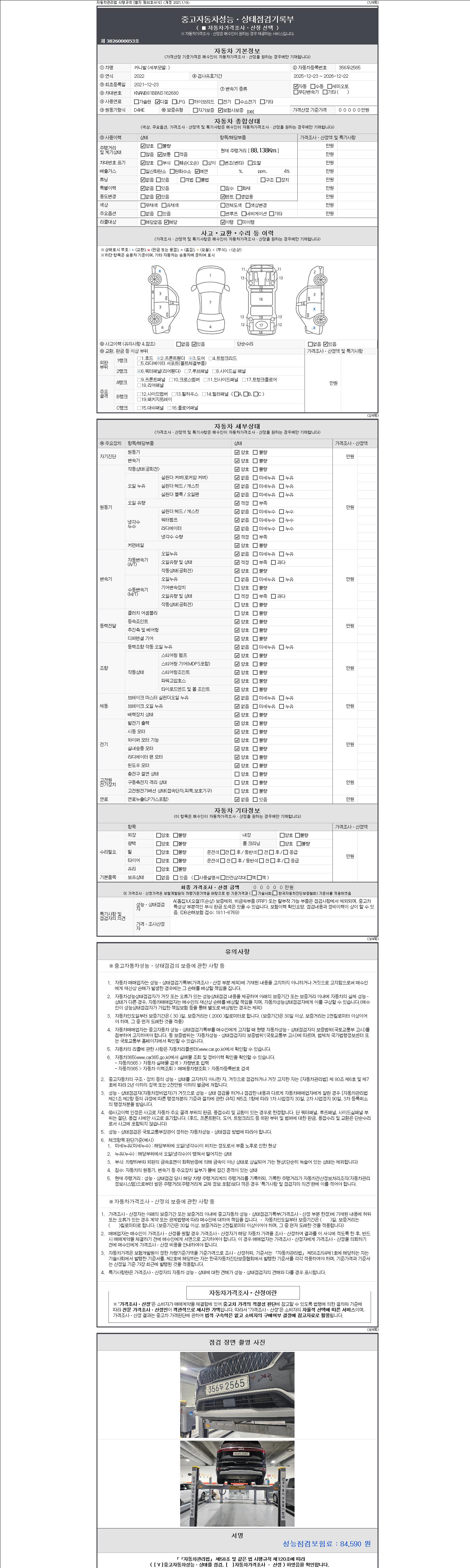 - 2. 차량 등록증이나 성능점검지 등을 상담자에게 요청및 확인하시고 사전에 미리 점검 하시기를 권유드립니다.