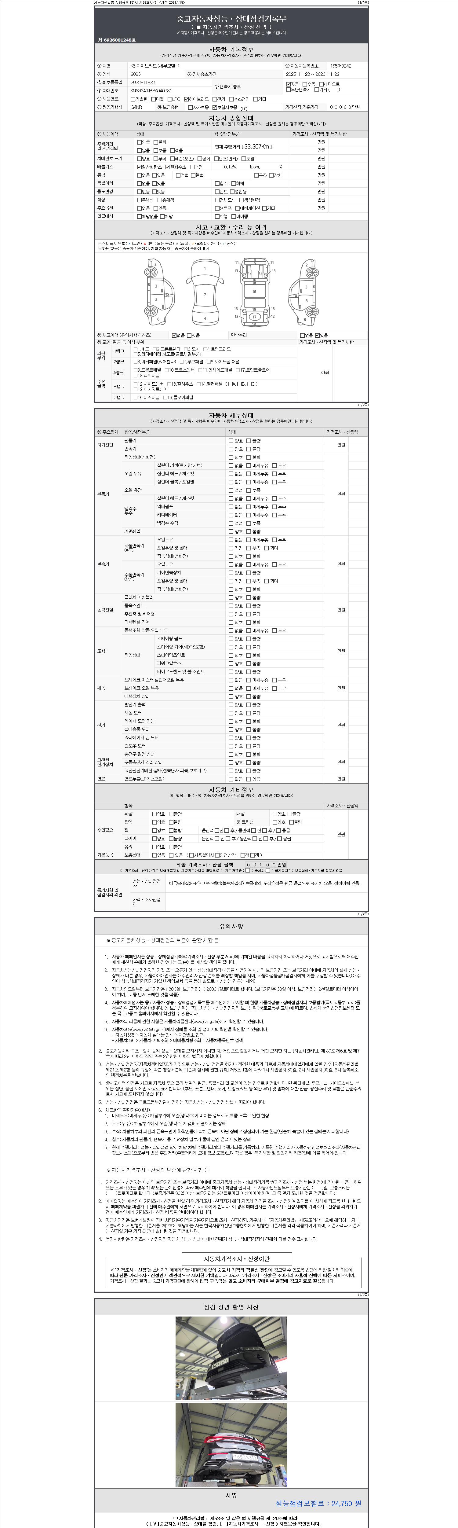 - 사고유무 : 성능기록부 참조