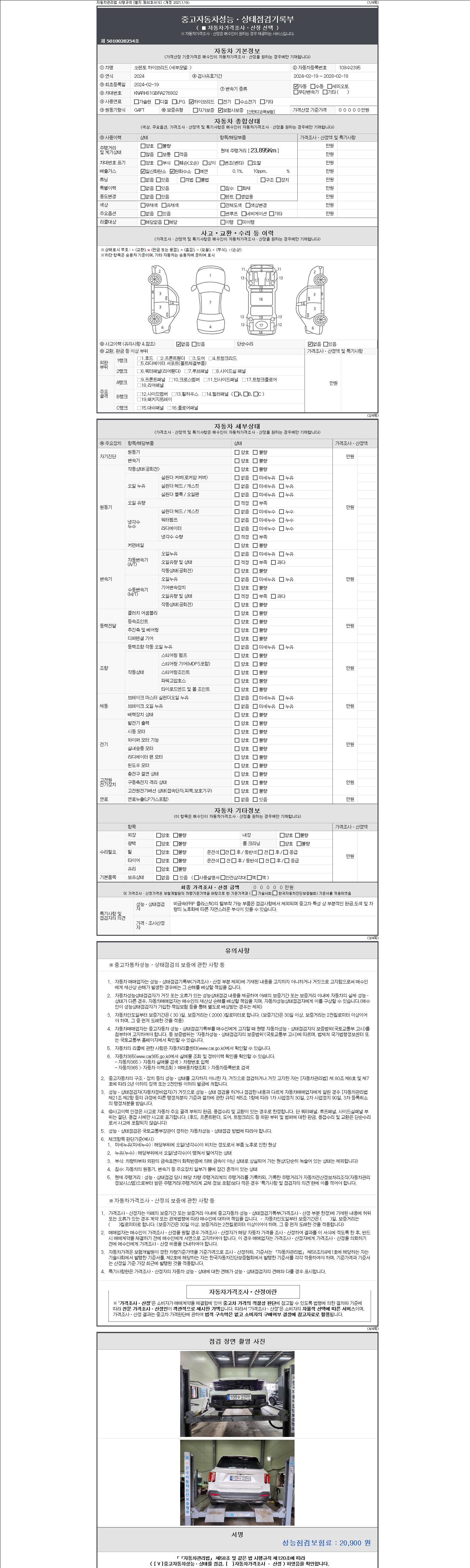 | 주행거리 | 23,895 km | 차량번호 | 109수2395 | 사고유무 | 성능기록부 참조 | 제시번호 | 제 2147483647 호 |