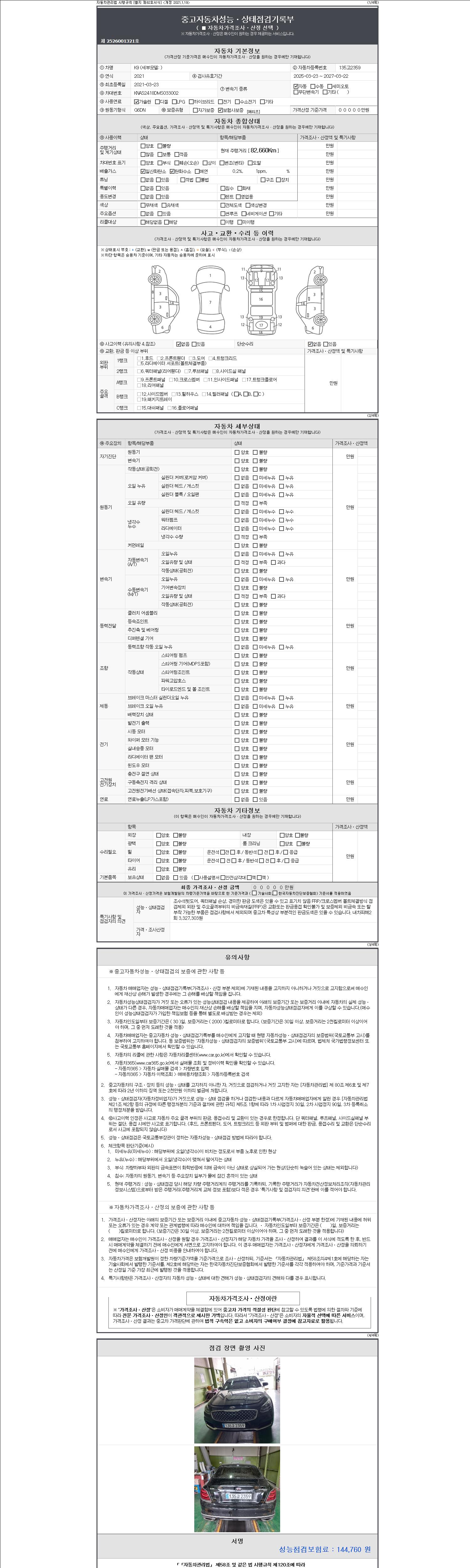 -중고자동차 매매업자를 통해 차량을 구입하실 경우 반드시 "중고자동차 성능, 상태점검 기록부"를 교뷰 받으셔야 하며, 매매업자는 반드시 의무 교부 하여야 압니다.