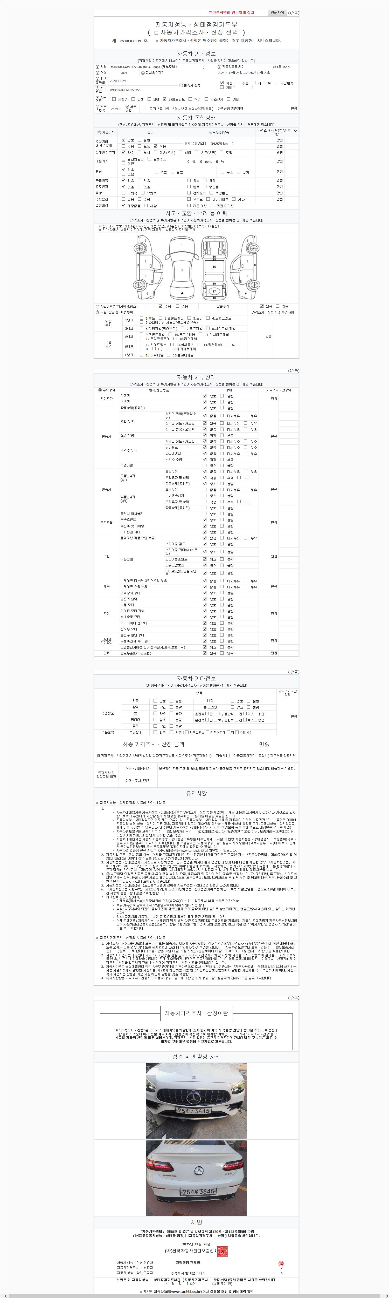| 주행거리 | 34,850 km | 차량번호 | 254우3645 | 사고유무 | 성능기록부 참조 | 제시번호 | 제 2147483647 호 |