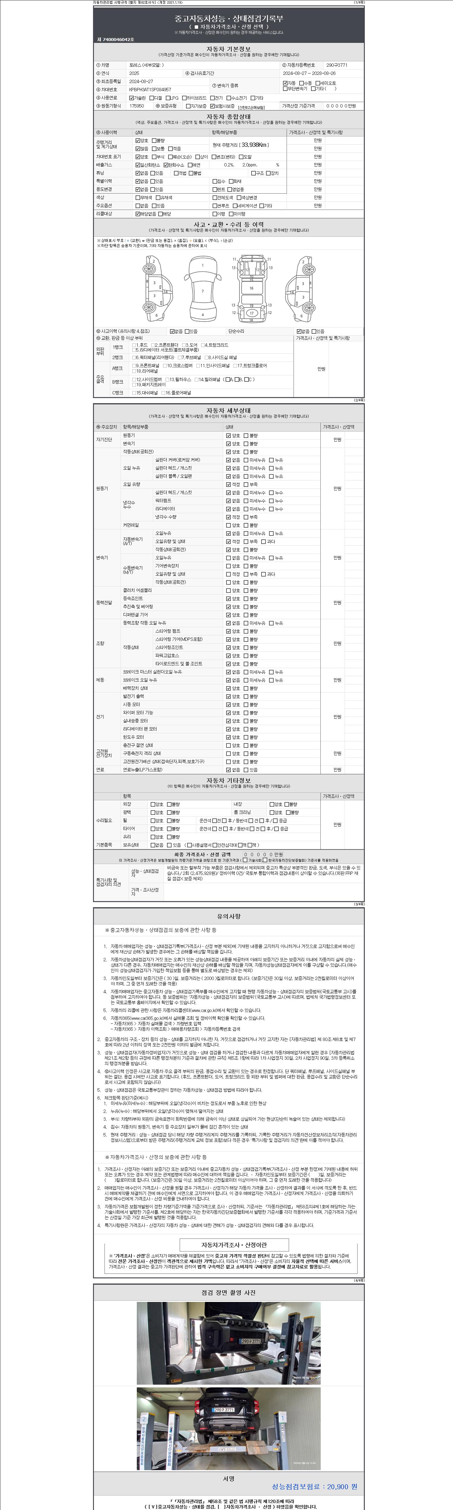 - 2. 차량 등록증이나 성능점검지 등을 상담자에게 요청및 확인하시고 사전에 미리 점검 하시기를 권유드립니다.