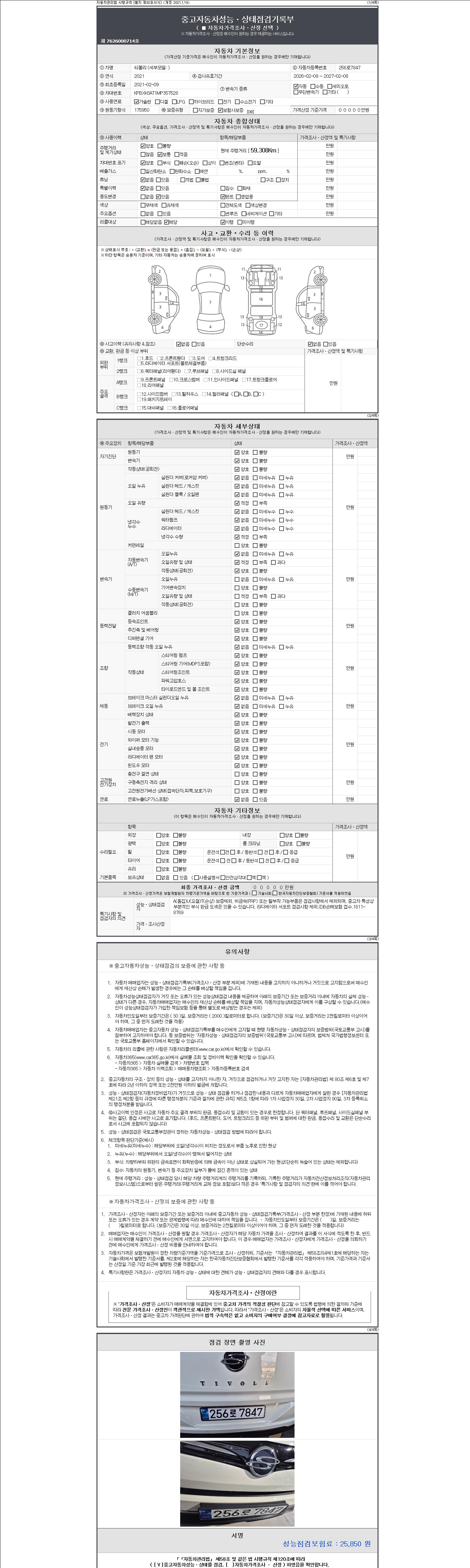 - 2. 차량 등록증이나 성능점검지 등을 상담자에게 요청및 확인하시고 사전에 미리 점검 하시기를 권유드립니다.