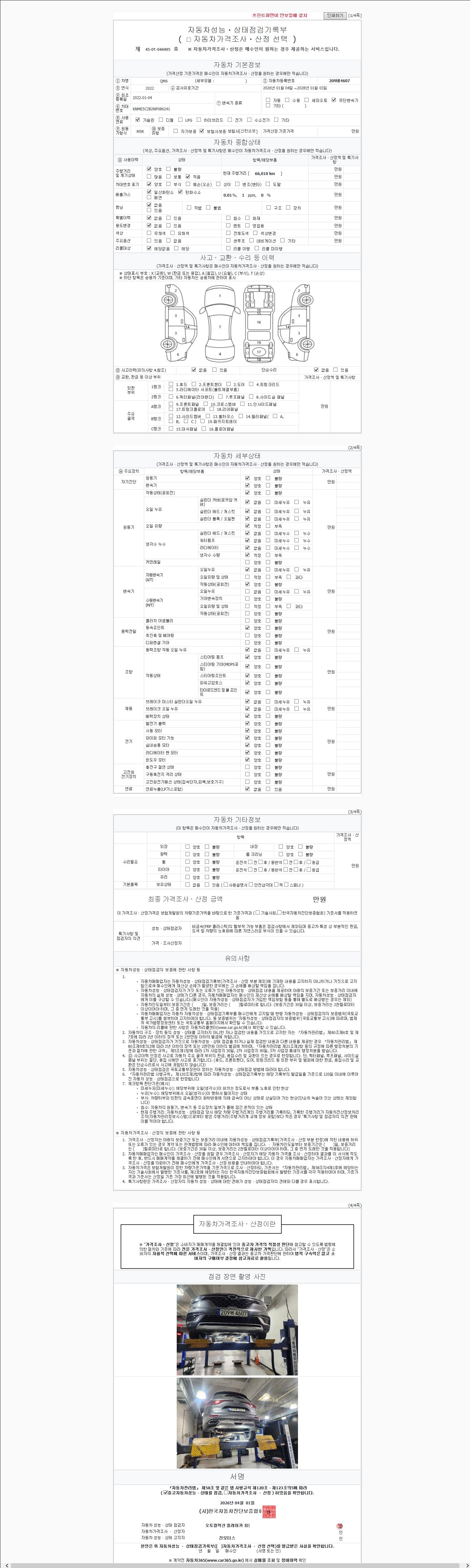 | 주행거리 | 66,010 km | 차량번호 | 209버4607 | 사고유무 | 성능기록부 참조 | 제시번호 | 제 2147483647 호 |