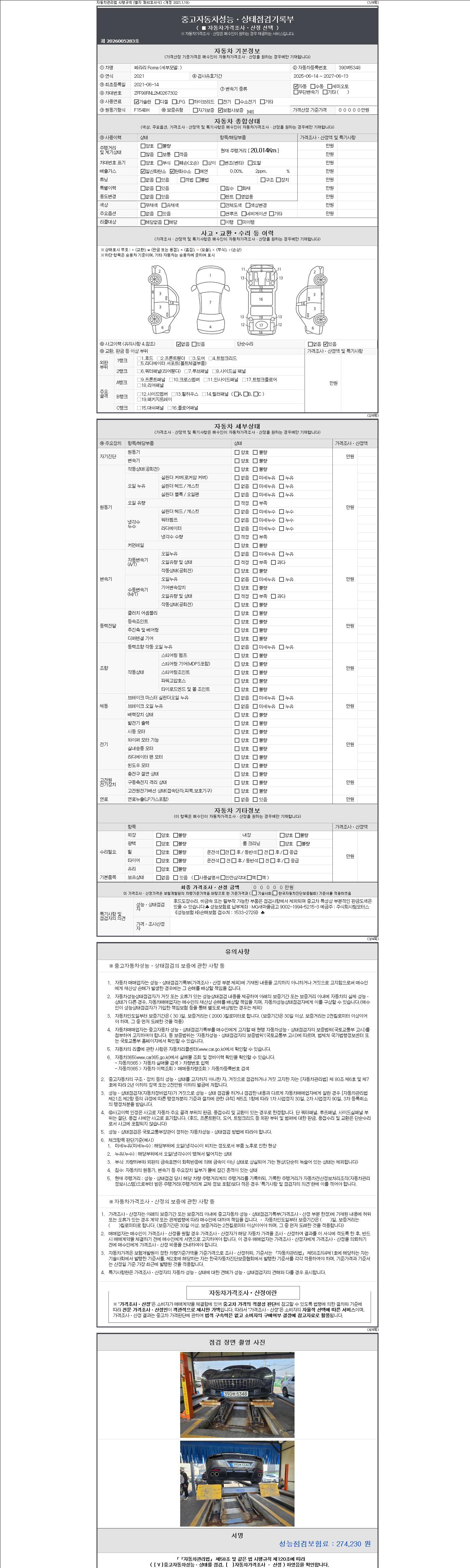 | 주행거리 | 20,014 km | 차량번호 | 390버5348 | 사고유무 | 성능기록부 참조 | 제시번호 | 제 2147483647 호 |