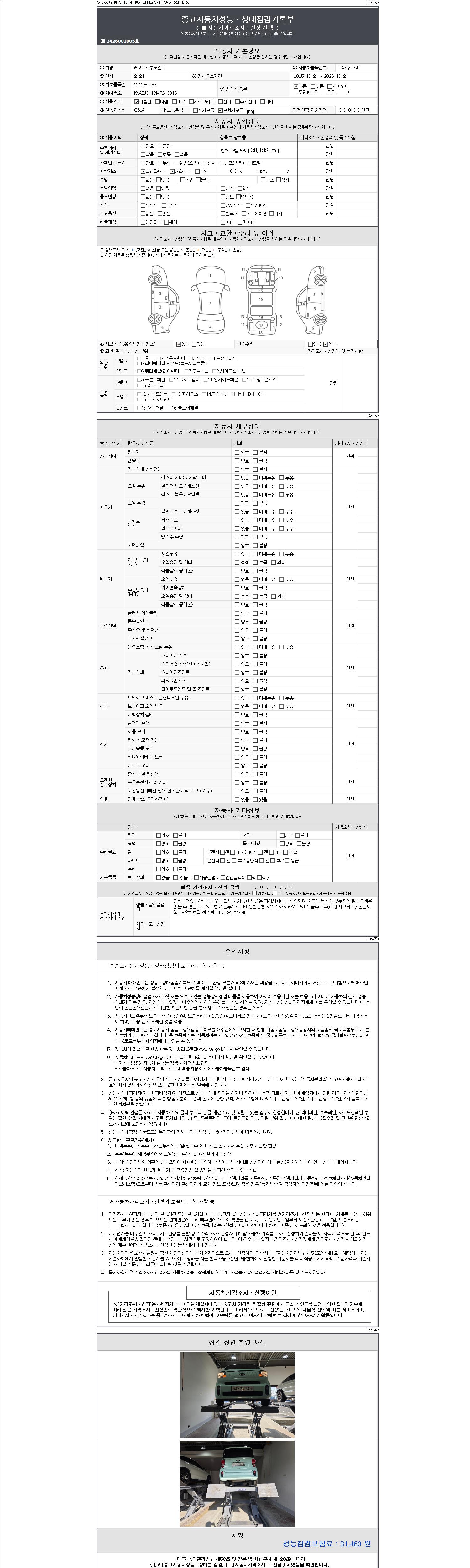 -중고자동차 매매업자를 통해 차량을 구입하실 경우 반드시 "중고자동차 성능, 상태점검 기록부"를 교뷰 받으셔야 하며, 매매업자는 반드시 의무 교부 하여야 압니다.